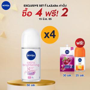 [ส่งฟรี] นีเวีย เอ็กซ์ตร้า ไบรท์เทนนิ่ง โรลออน ระงับกลิ่นกาย สำหรับผู้หญิง 50มล. 4ชิ้น NIVEA Extra Brightening Roll On 50ml. 4 pcs (โรลออน รักแร้ขาว)