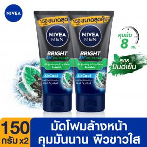 [ส่งฟรี] นีเวีย เมน โฟมล้างหน้า ไบรท์ ออยล์ เคลียร์ มัด150 กรัม 2 ชิ้น NIVEA Men Bright Oil Clear Mud Foam 150 g. 2 pcs. (คุมมัน 8 ชม. โฟมล้างหน้าผู้ชาย สิวอุดตัน